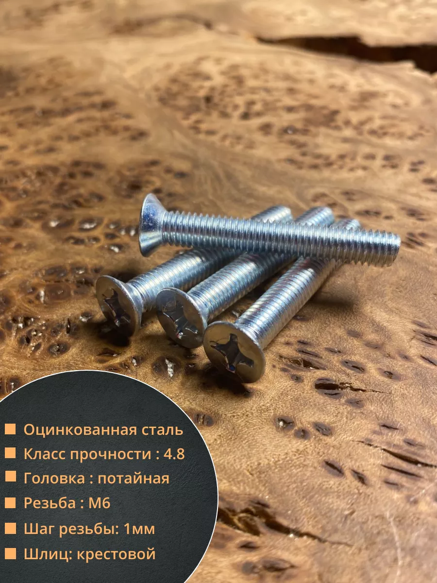 Винт потайной оцинкованный 6х45 DIN965, 50 шт.