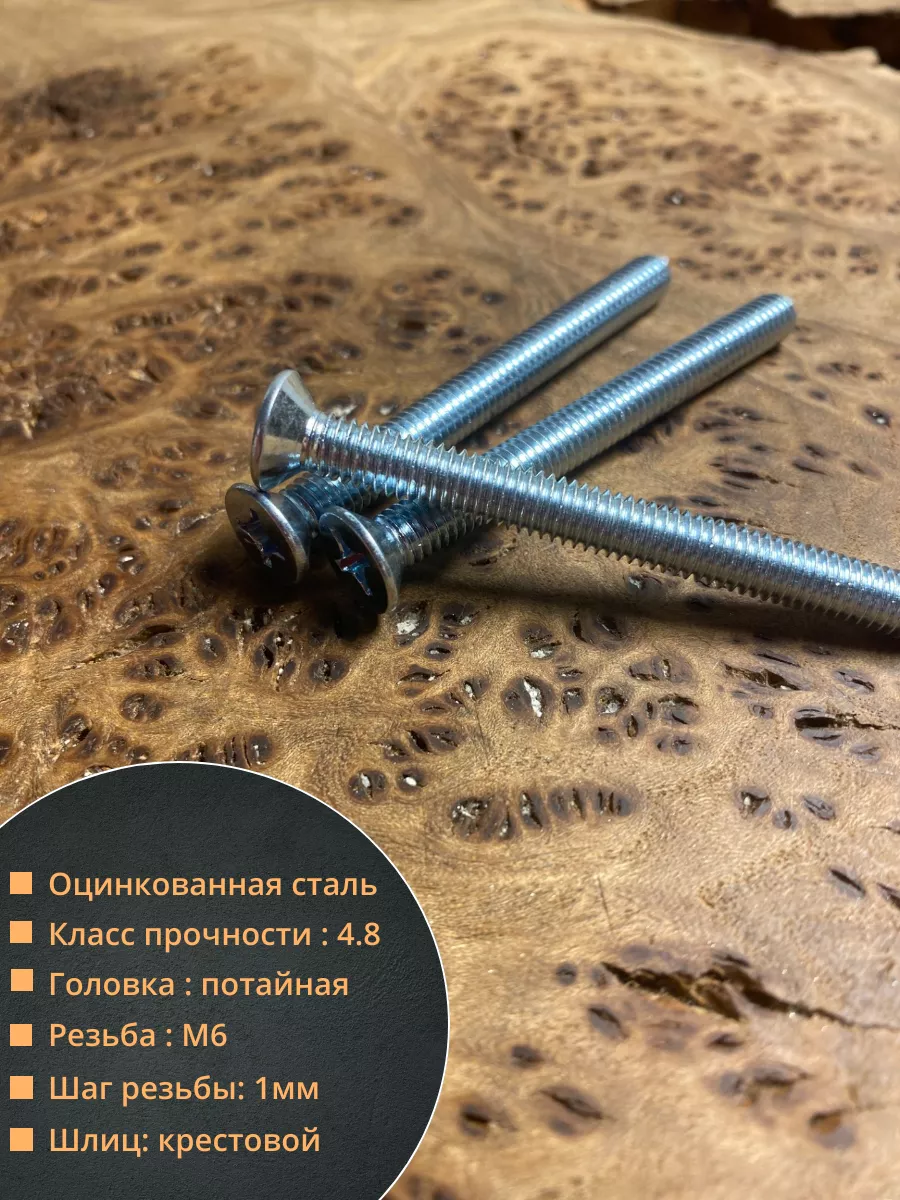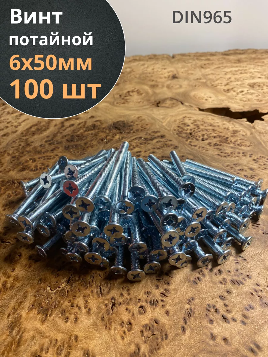 Винт потайной оцинкованный 6х50 DIN965, 100 шт.