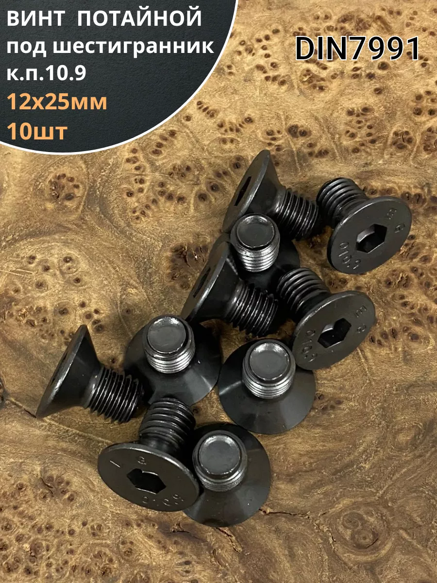 Винт потайной под шестигранник 12х25 DIN7991 к.п.10.9,10 шт.
