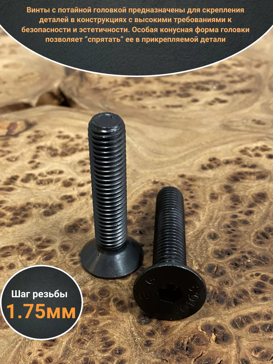 Винты с потайной головкой предназначены для скрепления деталей в конструкциях с высокими требованиями к безопасности и эстетичности. Особая конусная форма головки позволяет “спрятать” ее в прикрепляемой детали. При этом поверхность головки находится в одной плоскости с поверхностью детали. Крепёж с такими свойствами высоко востребован в машино-, автомобилестроении, при сборке бытовой техники, в приборостроении. Конструкция винта DIN 7991 включает стержень с метрической резьбой, потайную головку и шестигранное углубление под ключ для передачи крепежному изделию крутящего момента. Шестигранный внутренний диаметр углубления дает возможность подавать гораздо большее усилие при установке в контакте с ключом или битой. Винты DIN 7991 могут изготавливаться из углеродистых и легированных сталей