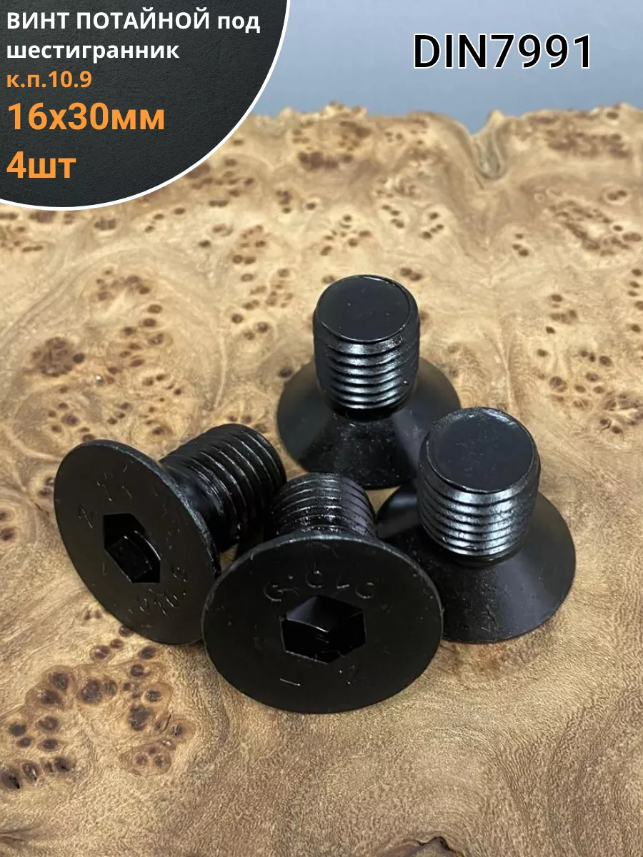Винт потайной под шестигранник 16х30 DIN7991 к.п.10.9, 4шт