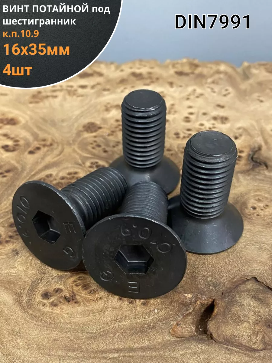 Винт потайной под шестигранник 16х35 DIN7991 к.п.10.9, 4шт