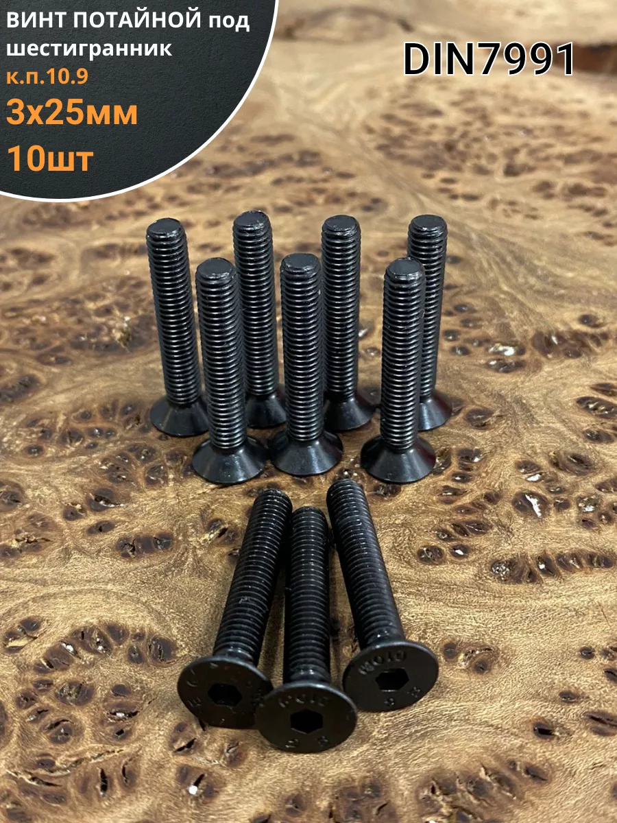 Винт потайной под шестигранник 3х25 DIN7991 к.п.10.9,10 шт.