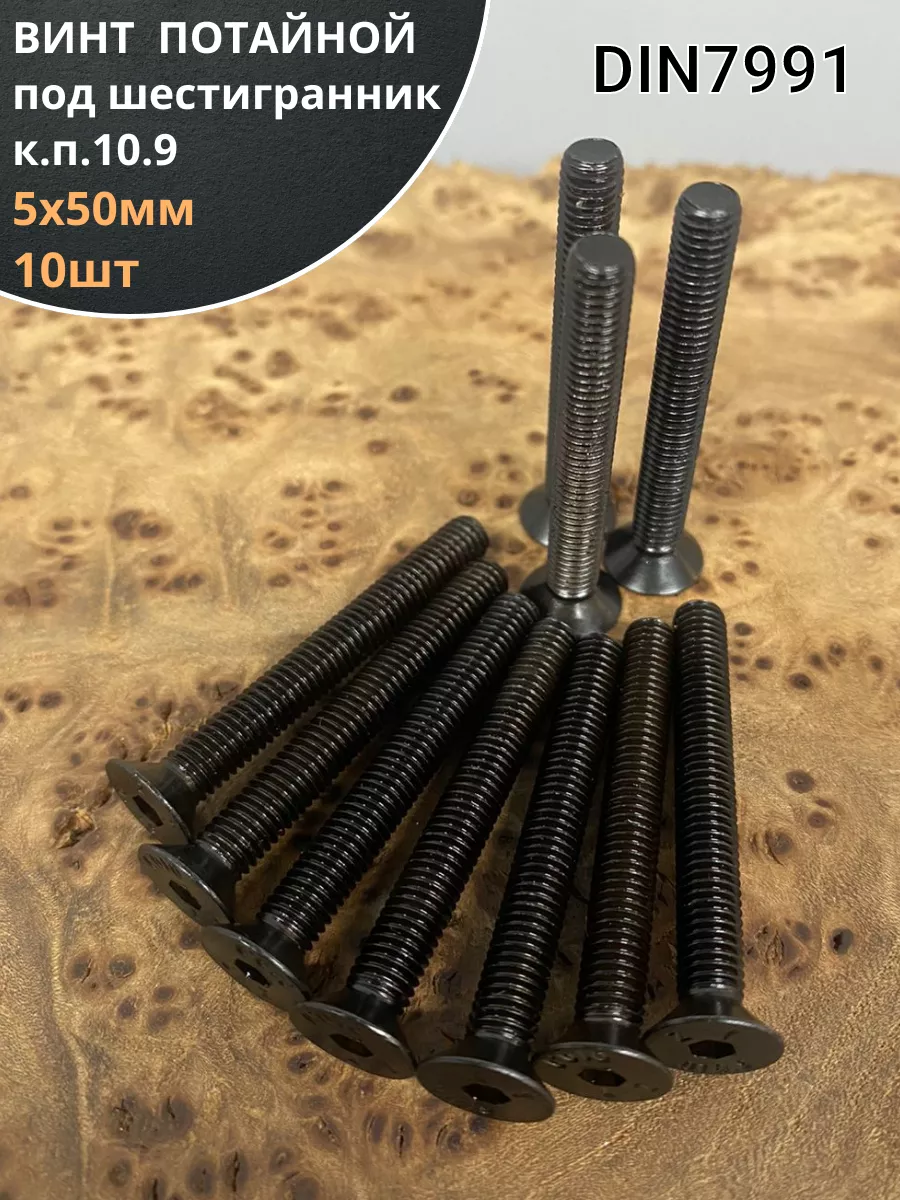 Винт потайной под шестигранник 5х50 DIN7991 к.п.10.9, 10 шт.
