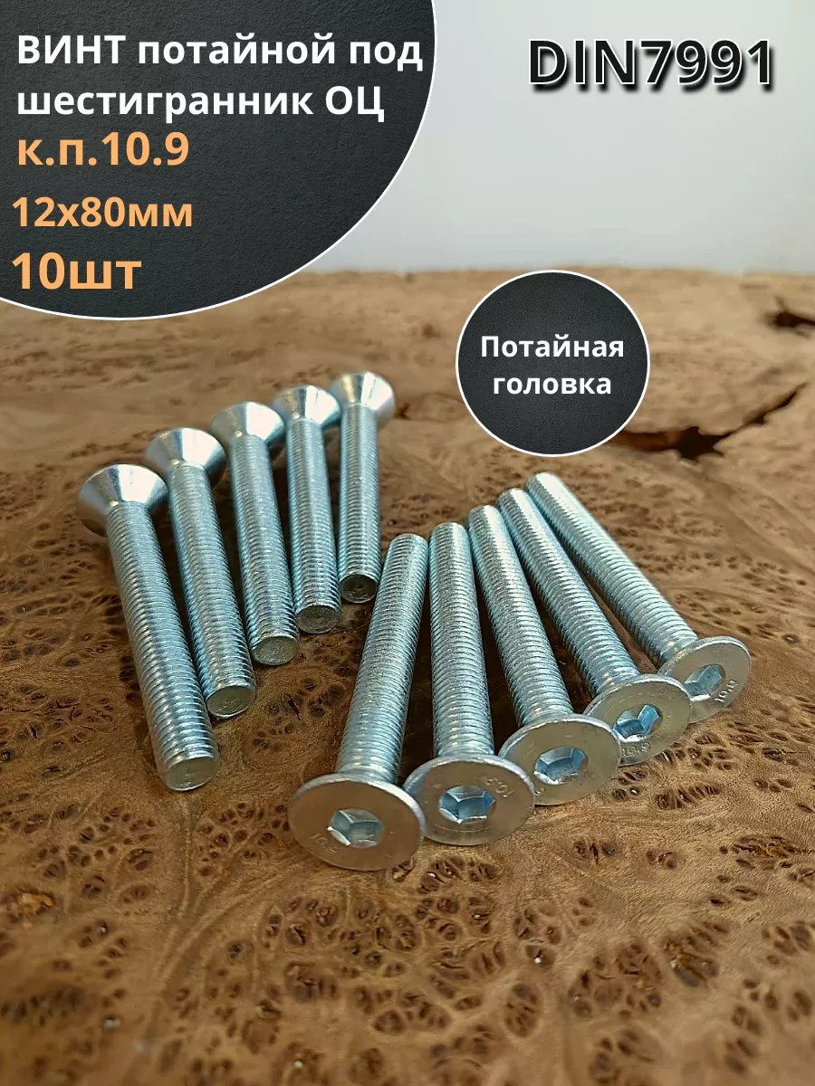 Винт потайной под шестигранник ОЦ М12х80 DIN7991к.п.10.9,10шт