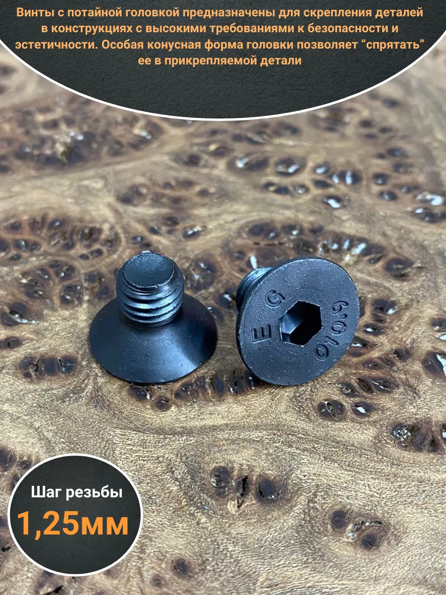 Винт потайной под шестигранник 8х10 DIN7991 к.п.10.9, 10 шт.