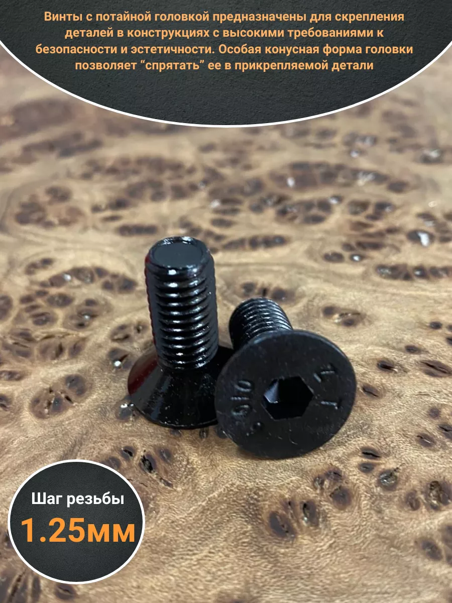 Винты с потайной головкой предназначены для скрепления деталей в конструкциях с высокими требованиями к безопасности и эстетичности. Особая конусная форма головки позволяет “спрятать” ее в прикрепляемой детали. При этом поверхность головки находится в одной плоскости с поверхностью детали. Крепёж с такими свойствами высоко востребован в машино-, автомобилестроении, при сборке бытовой техники, в приборостроении. Конструкция винта DIN 7991 включает стержень с метрической резьбой, потайную головку и шестигранное углубление под ключ для передачи крепежному изделию крутящего момента. Шестигранный внутренний диаметр углубления дает возможность подавать гораздо большее усилие при установке в контакте с ключом или битой. Винты DIN 7991 могут изготавливаться из углеродистых и легированных сталей