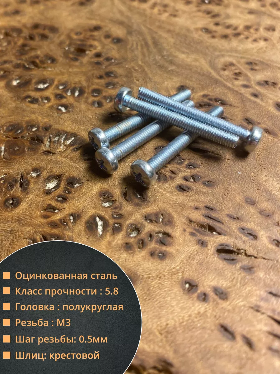 Винт с полукруглой головкой М3х20 ОЦ DIN7985, 10 шт.