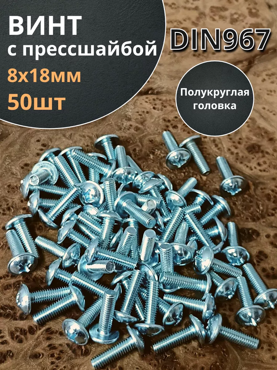 Винт с прессшайбой М8х18 полукруглая головка DIN967, 10 шт. вп818 1 шт.