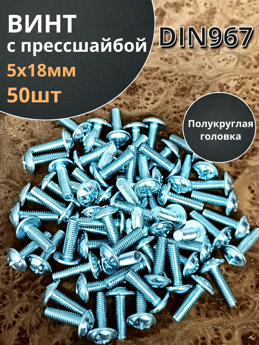 Винт с прессшайбой М5х18 полукруглая головка DIN967, 10 шт. вп518 1 шт.