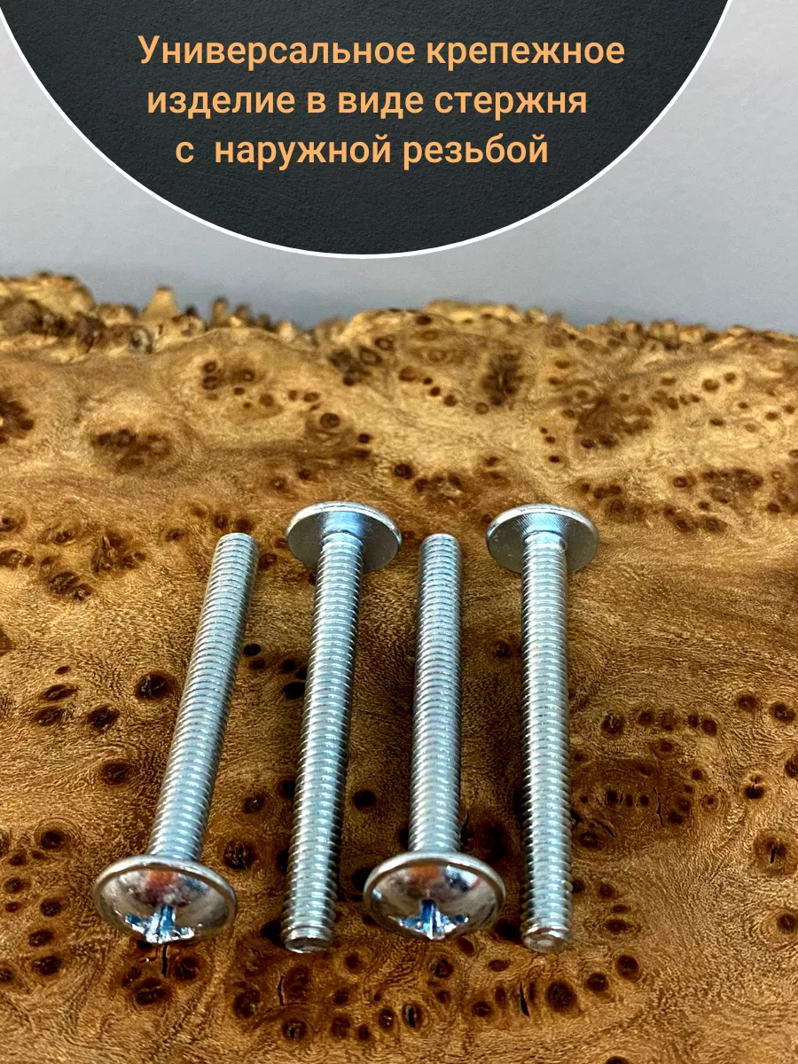 Винт мебельный DIN 967 — это универсальное крепежное изделие в виде стержня с наружной резьбой, выполненной по всей длиннее. Головка крепежа в виде полусферы с широкими полями, на головки имеются пазы под крестовую отвертку. При проведении монтажа можно использовать как PZ, так и SL отвертки или насадки, что делает крепеж универсальным.