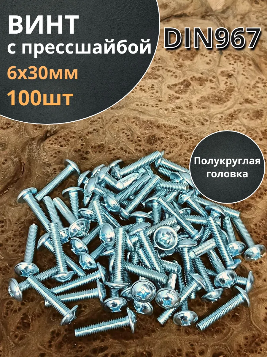 Винт с прессшайбой М6х30 мебельный DIN967, 100 шт.