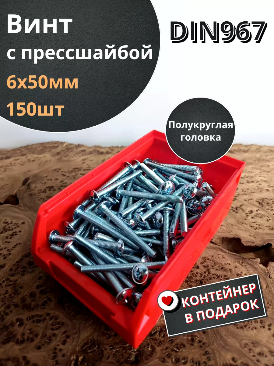 Винт с прессшайбой М6х50 DIN967, 150 шт. в контейнере
