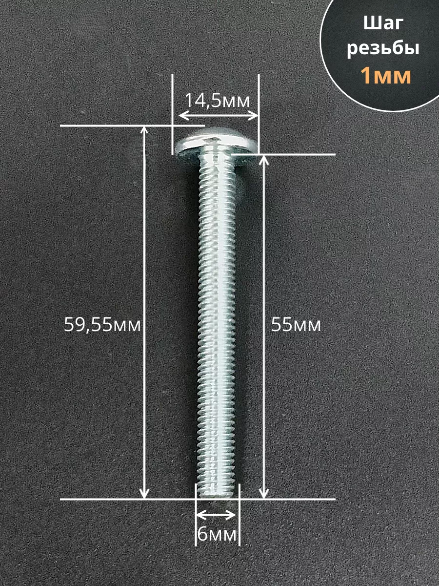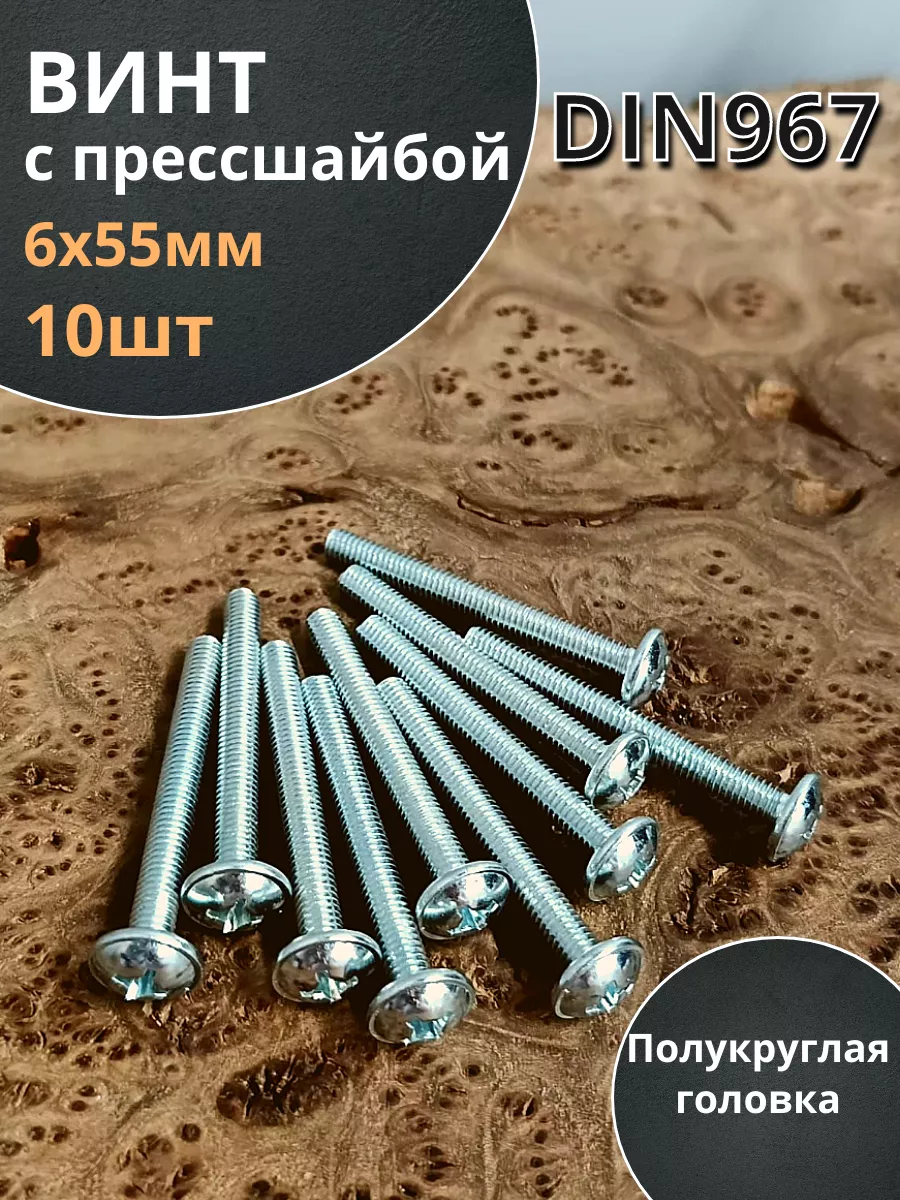 Винт с прессшайбой М6х55 полукруглая головка DIN967, 10 шт.