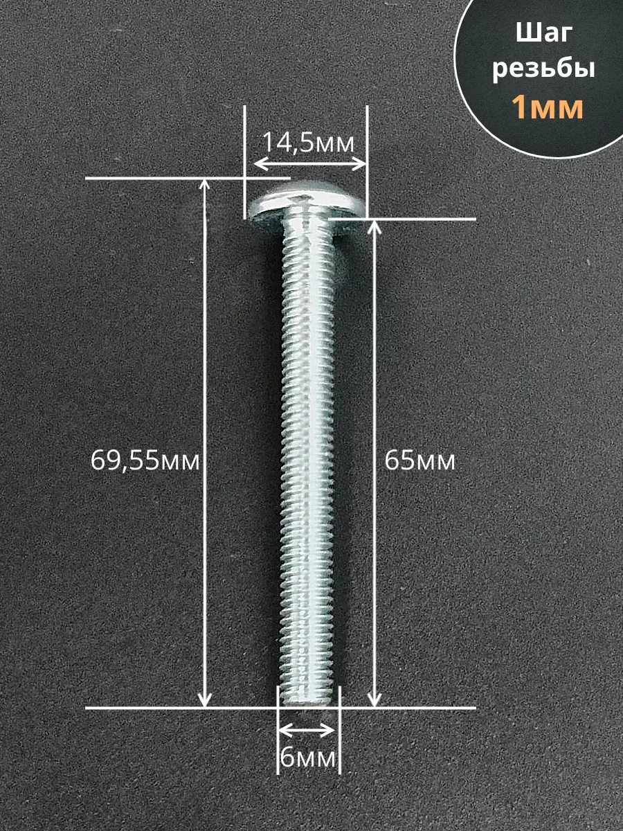 Винт с прессшайбой М6х65 полукруглая головка DIN967, 10 шт.
