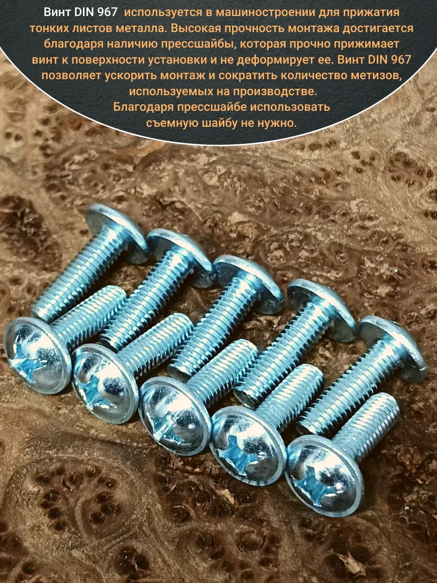 Винт с прессшайбой М8х20 мебельный DIN967, 100 шт.