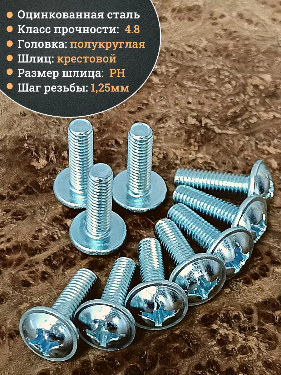 Винт мебельный DIN 967 — это универсальное крепежное изделие в виде стержня с наружной резьбой, выполненной по всей длиннее. Головка крепежа в виде полусферы с широкими полями, на головки имеются пазы под крестовую отвертку. При проведении монтажа можно использовать как PZ, так и SL отвертки или насадки, что делает крепеж универсальным.