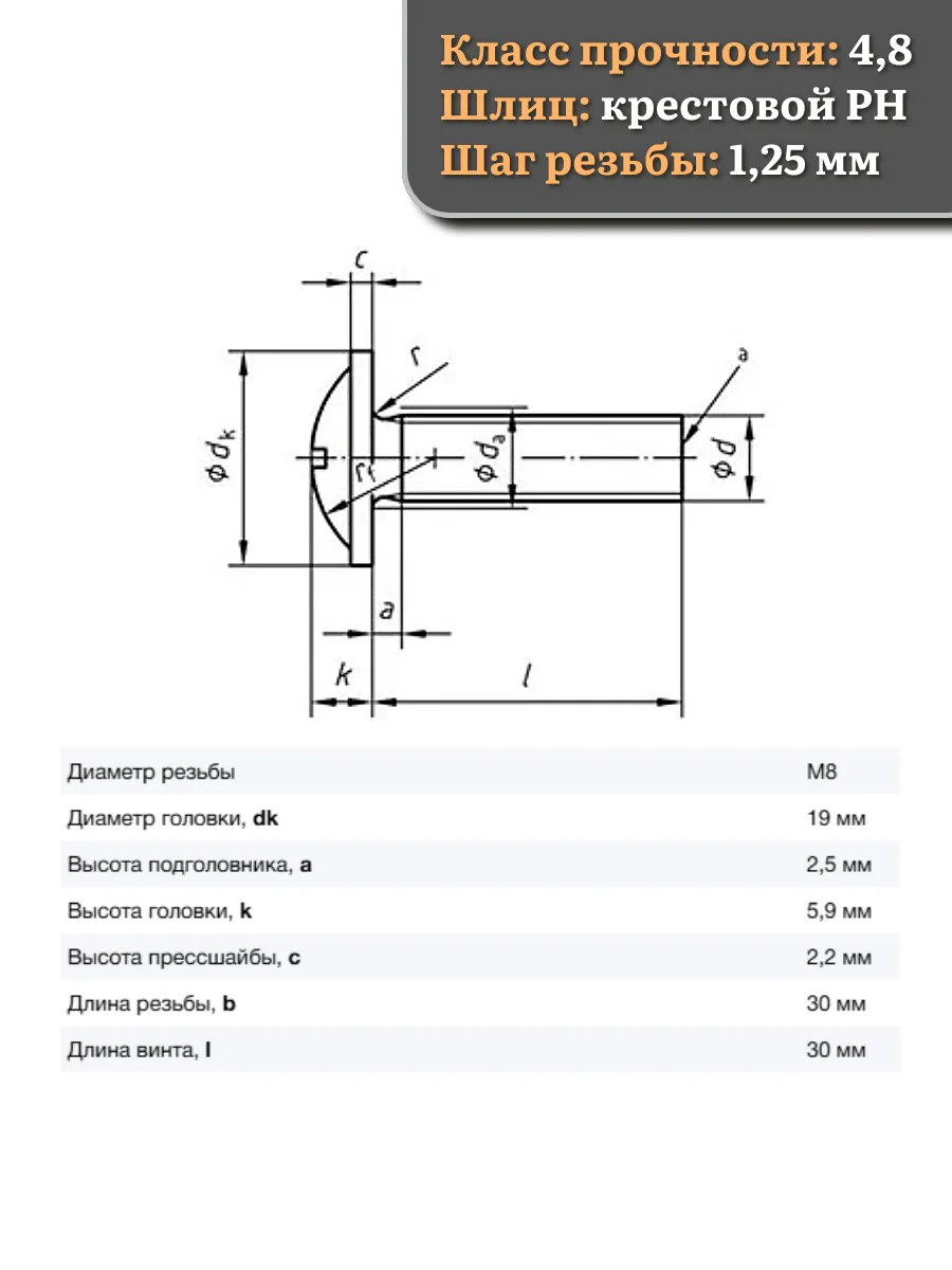 Винт с прессшайбой М8х30 DIN967 с гайкой фланец, 10 шт.