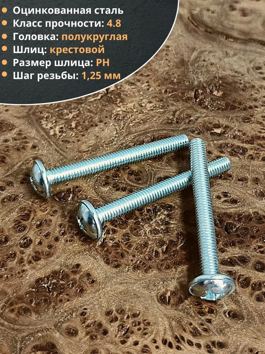 Винт мебельный с полукруглой головкой и прессшайбой, применяется при строительных работах, в машиностроении. Используется для монтажа из металла, пластика и древесины твердых пород. Монтаж производится в заранее подготовленное отверстие с применением гайки соответствующего диаметра, или применятся для вкручивания в различные резьбовые отверстия при монтаже. Винт мебельный DIN 967 — это универсальное крепежное изделие в виде стержня с наружной резьбой, выполненной по всей длинне. Головка крепежа в виде полусферы с широкими полями, на головке имеются пазы под крестовую отвертку. При проведении монтажа можно использовать как PZ, так и SL отвертки или насадки, что делает крепеж универсальным.
