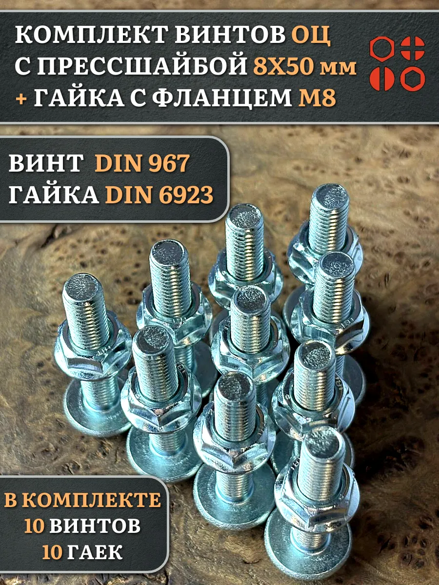 Винт с прессшайбой М8х50 DIN967 с гайкой фланец, 10 шт.