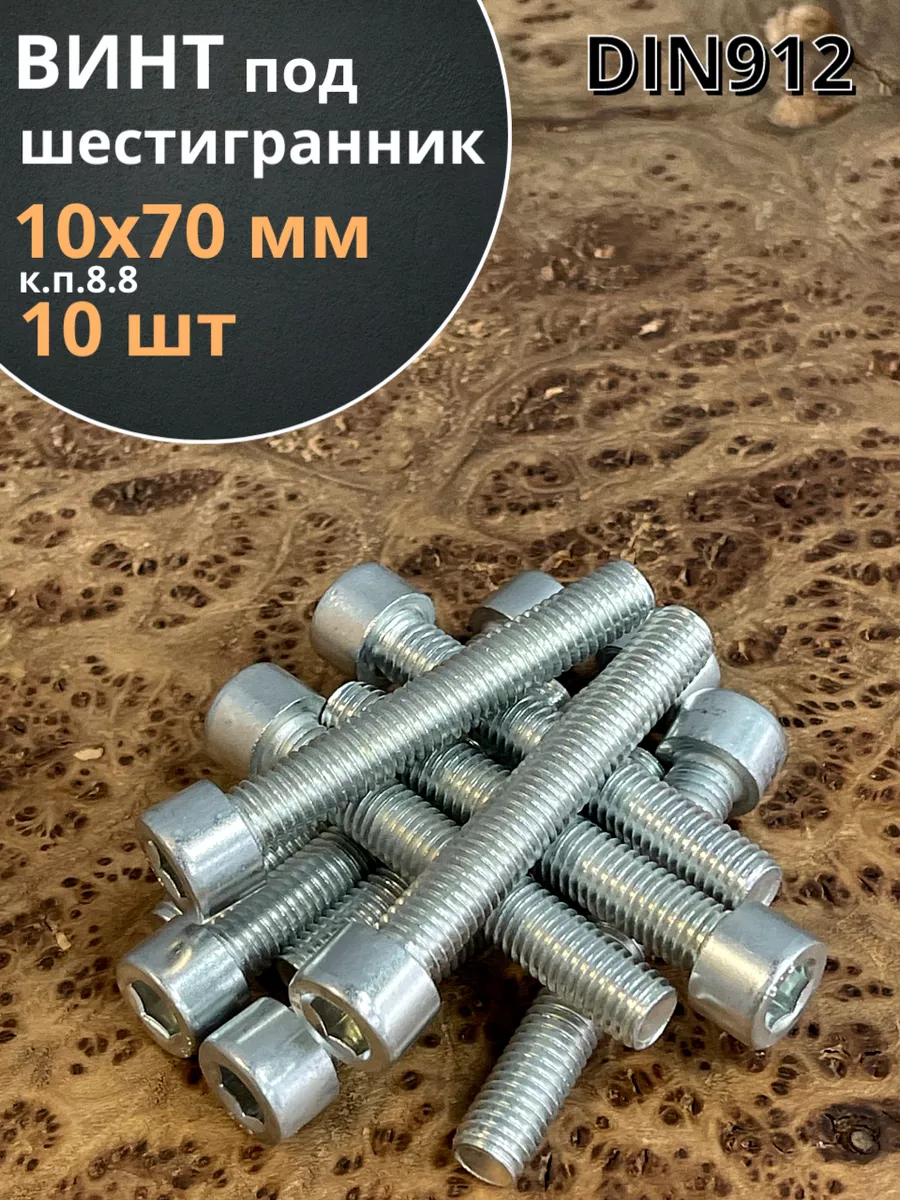 Винт под шестигранник ПР 10х70 мм ОЦ к.п.8.8 DIN912, 10 шт.