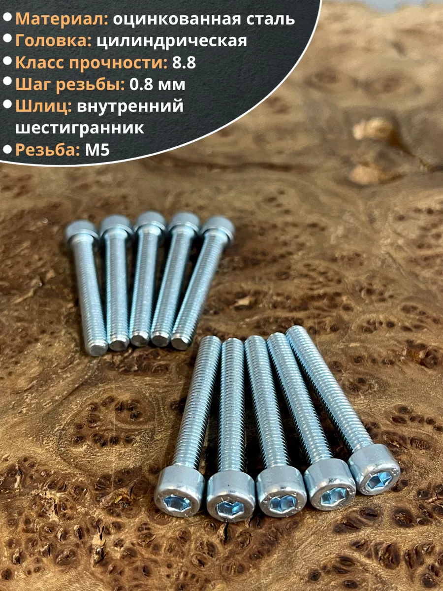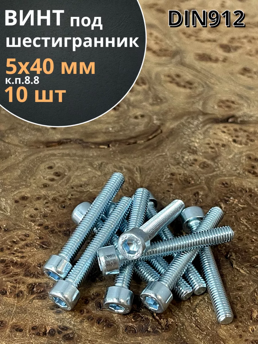 Винт под шестигранник ПР 5х40 мм ОЦ к.п.8.8 DIN912, 10 шт.