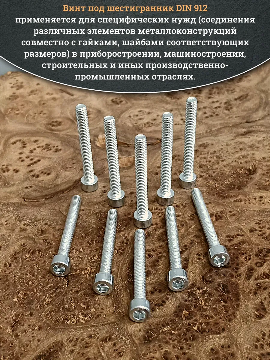Винт под шестигранник ПР 6х55 мм ОЦ к.п.8.8 DIN912, 10 шт.