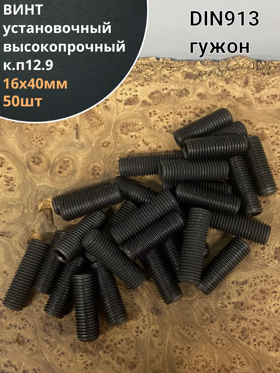 Винт установочный М16х40 мм к.п12.9 DIN913 (гужон) 10шт ву1640пр 1 шт.