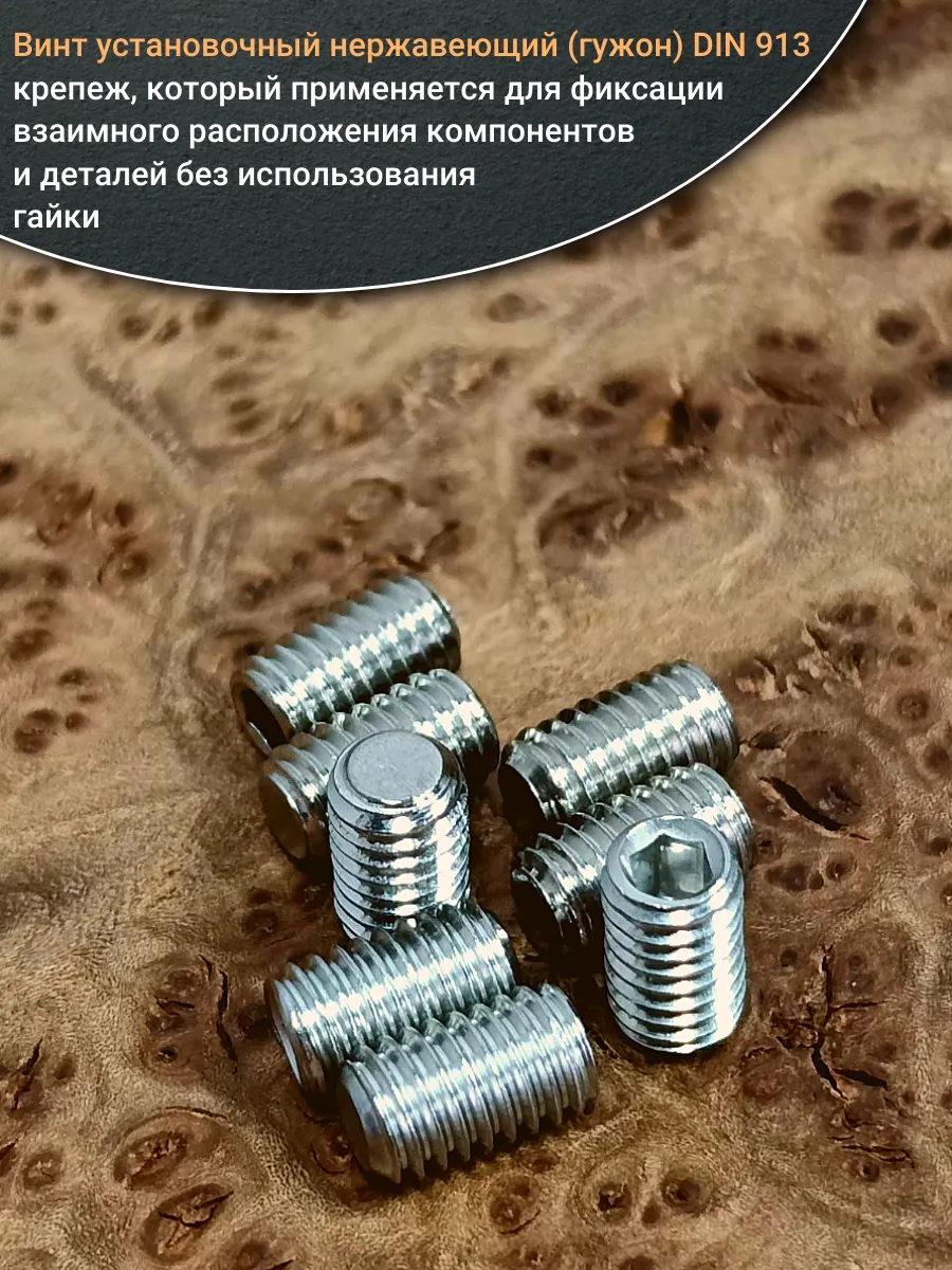 Винт установочный нержавеющий М3х12 DIN913 (гужон), 10 шт.