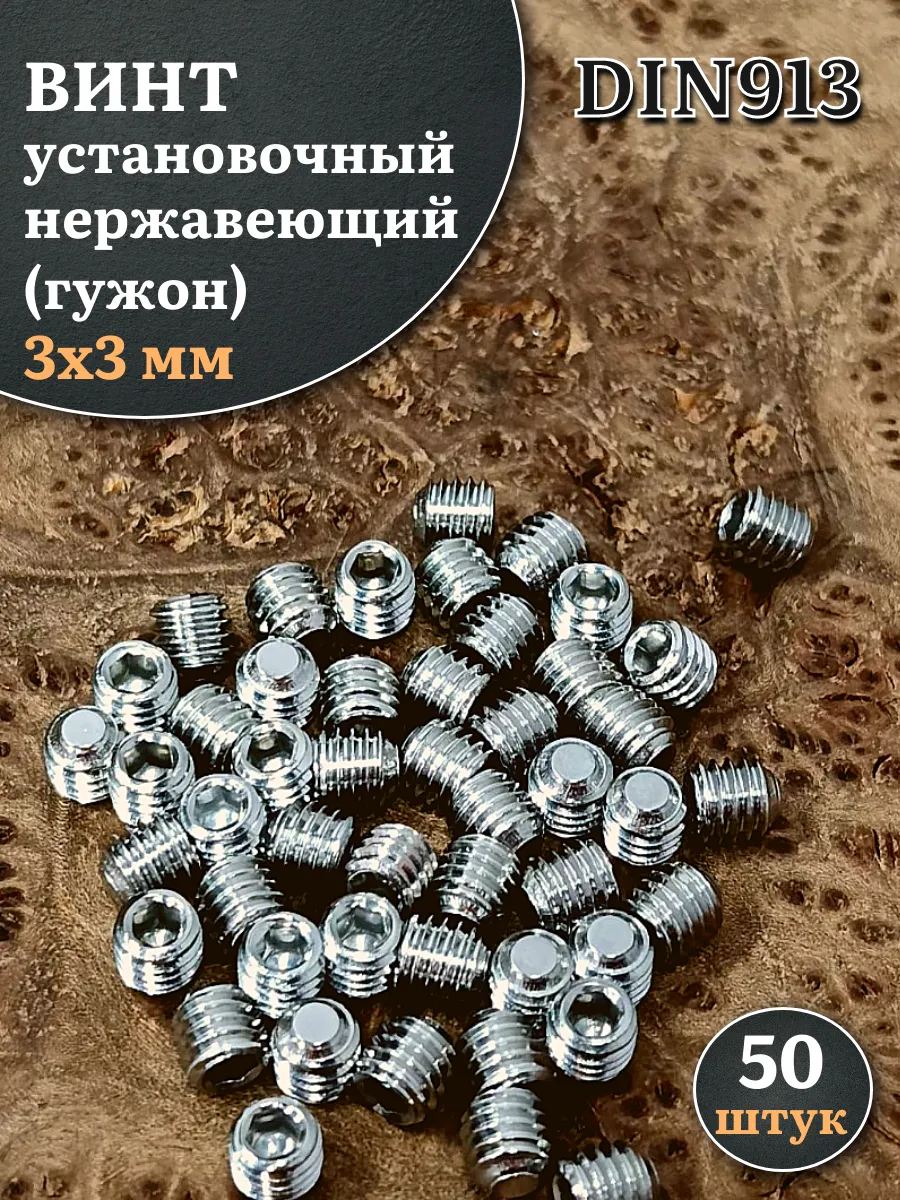 Винт установочный нержавеющий М3х3 DIN913 (гужон), 50 шт.