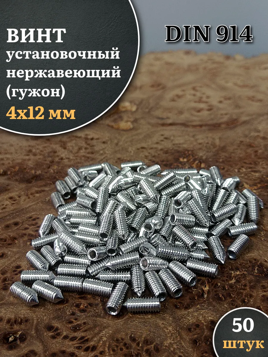 Винт установочный нержавеющий М4х12 DIN914 (гужон), 50 шт.
