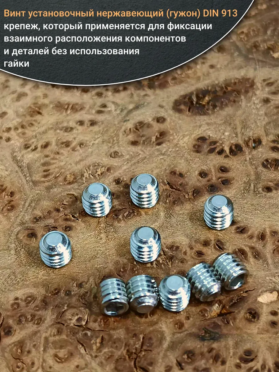 Винт установочный нержавеющий М6х6 DIN913 (гужон), 10 шт.