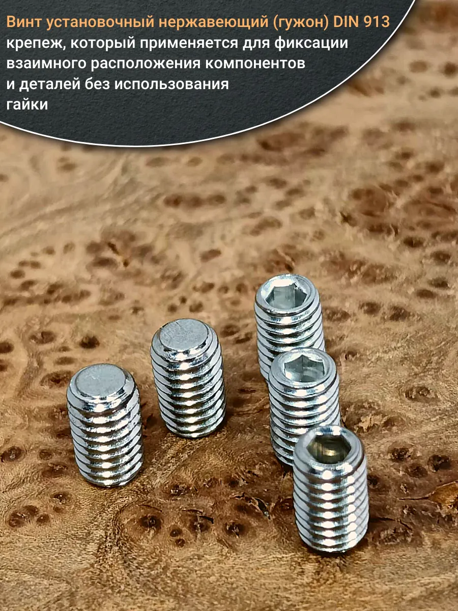 Винт установочный нержавеющий М8х10 DIN913 (гужон), 50 шт.