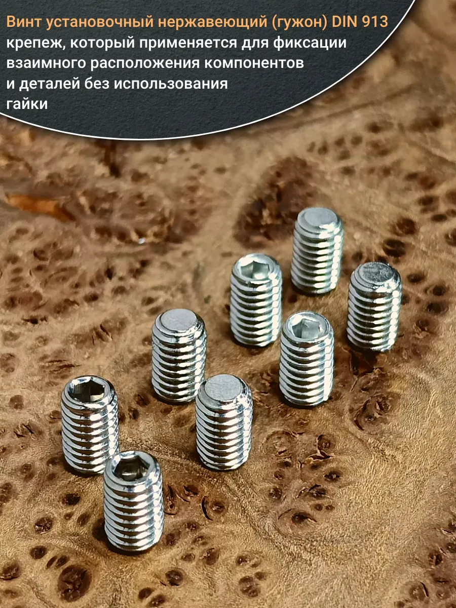 Винт установочный нержавеющий М8х12 DIN913 (гужон), 10 шт.