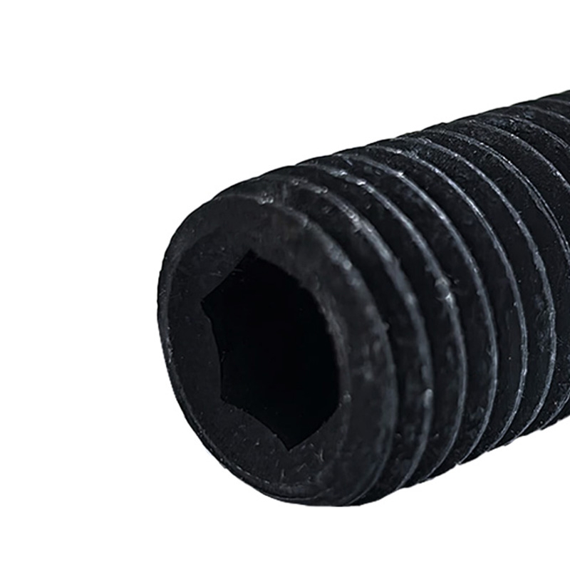Отсутствие головки позволяет полностью утопить винт вровень с поверхностью или ниже ее уровня, что обеспечивает эстетичный внешний вид конструкции и не создает помех движущимся частям. Внутренний шестигранник обеспечивает хорошую передачу крутящего момента и снижает риск повреждения шлица при затягивании. Крепеж производит точную регулировку.