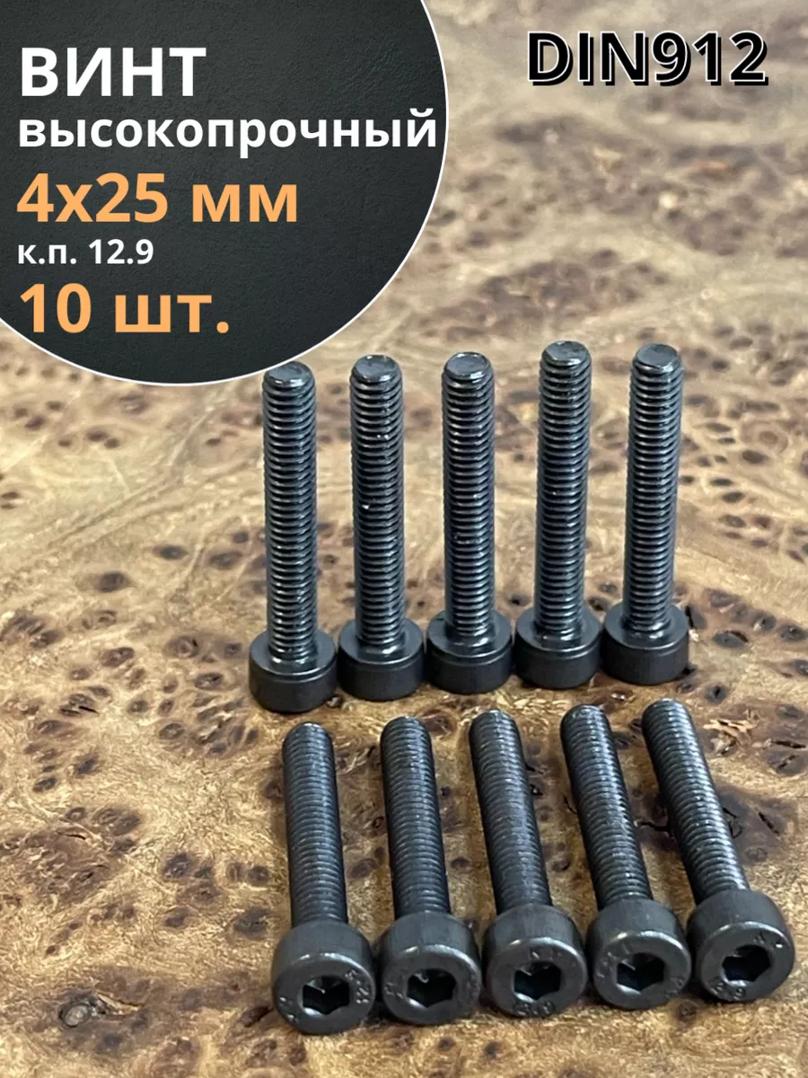 Винт высокопрочный ПР М4х25 мм к.п.12.9 черный DIN912, 10 шт.