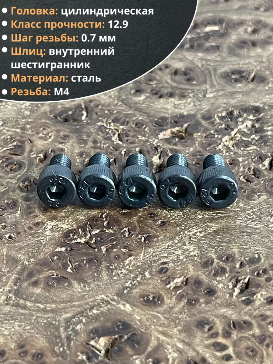 Винт высокопрочный ПР М4х6 мм к.п.12.9 черный DIN912, 10 шт.