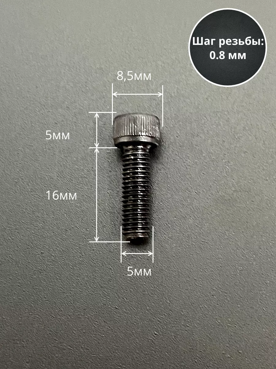 Винт высокопрочный ПР М5х16 мм к.п.12.9 черный DIN912, 10 шт.