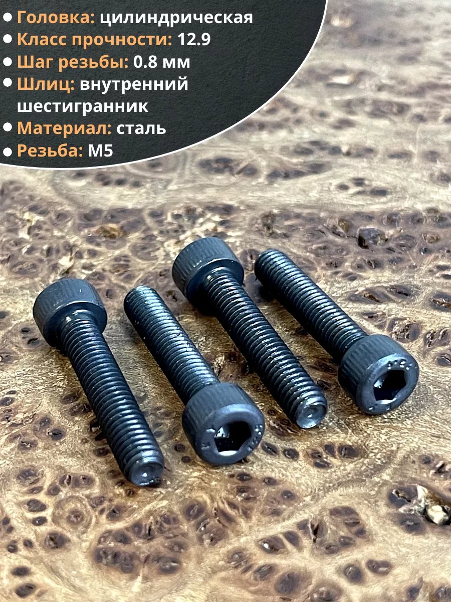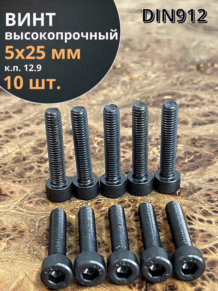 Винт высокопрочный ПР М5х25 мм к.п.12.9 черный DIN912, 10 шт.