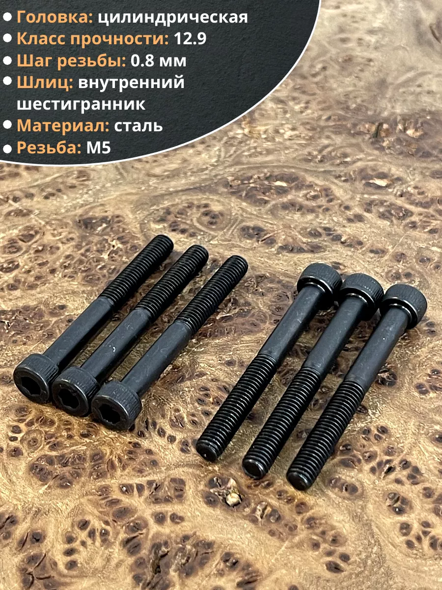 Винт высокопрочный НР М5х45 мм к.п.12.9 черный DIN912, 10 шт.