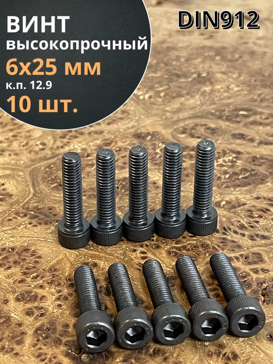 Винт высокопрочный ПР М6х25 мм к.п.12.9 черный DIN912, 10 шт.