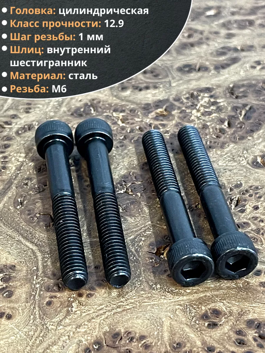 Винт высокопрочный НР М6х45 мм к.п.12.9 черный DIN912, 10 шт.