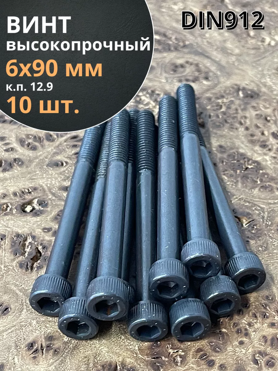 Винт высокопрочный НР М6х90 мм к.п.12.9 черный DIN912, 10 шт.