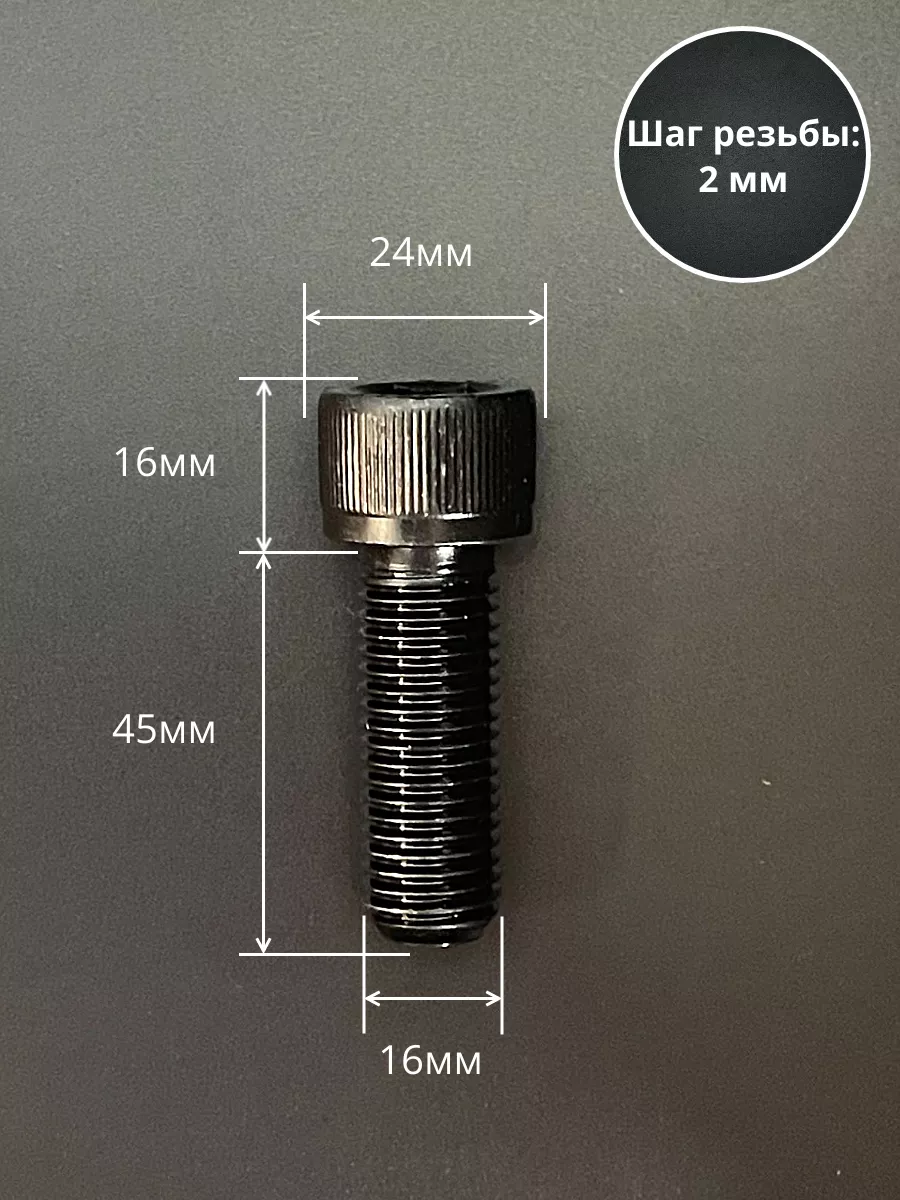 Винт высокопрочный ПР М16х45 мм к.п.12.9 черный DIN912, 4 шт.
