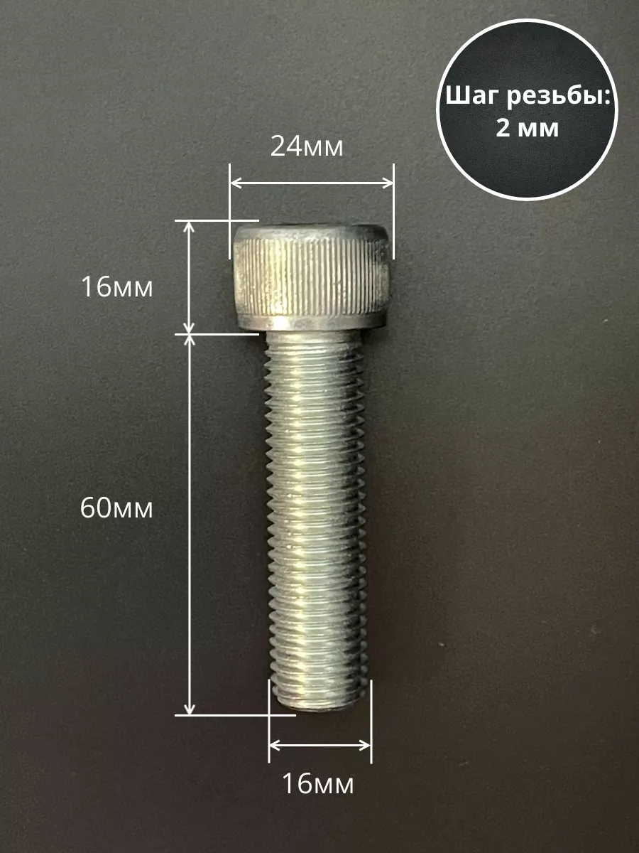 Винт высокопрочный ПР М16х60 мм к.п.12.9 черный DIN912, 2 шт. УТ000149260 1 шт.