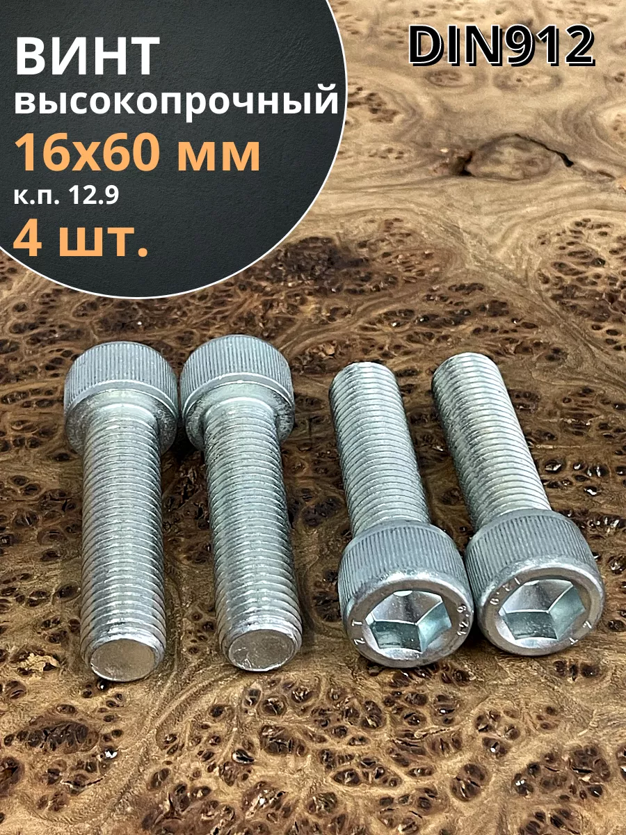 Винт высокопрочный ПР 16х60 мм ОЦ к.п.12.9 DIN912, 4 шт.