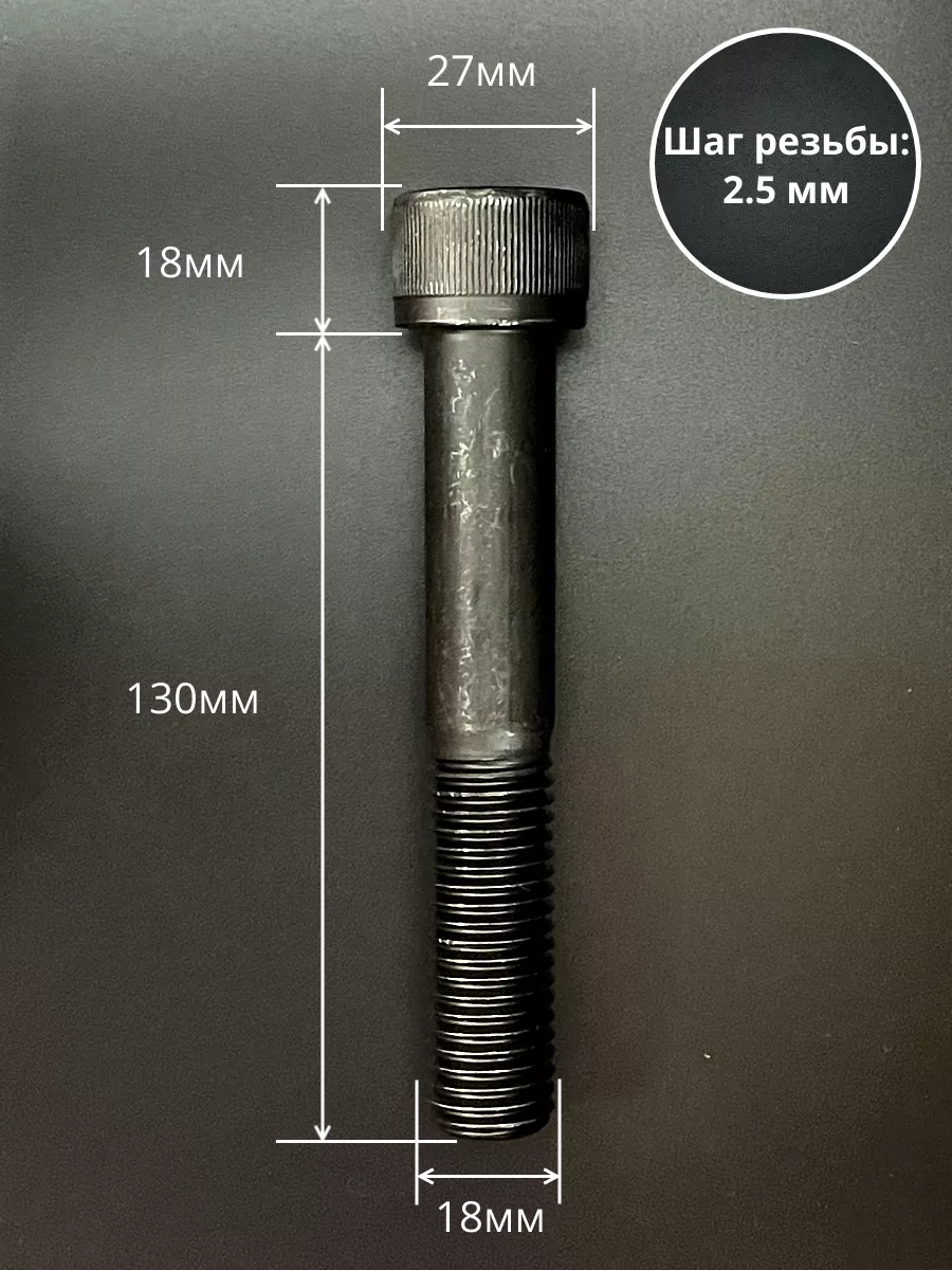 Винт высокопрочный НР М18х130 мм к.п.12.9 черный DIN912, 2 шт.
