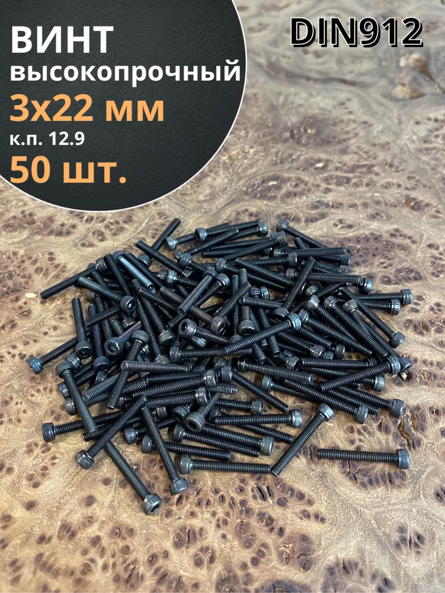 Винт высокопрочный ПР М3х22 мм к.п.12.9 черный DIN912, 50 шт.