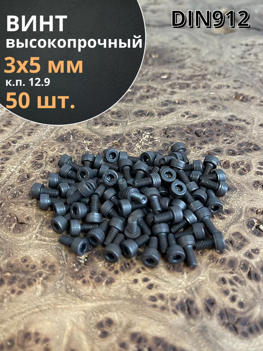 Винт высокопрочный М3х5 мм к.п.12.9 черный DIN912, 50 шт.