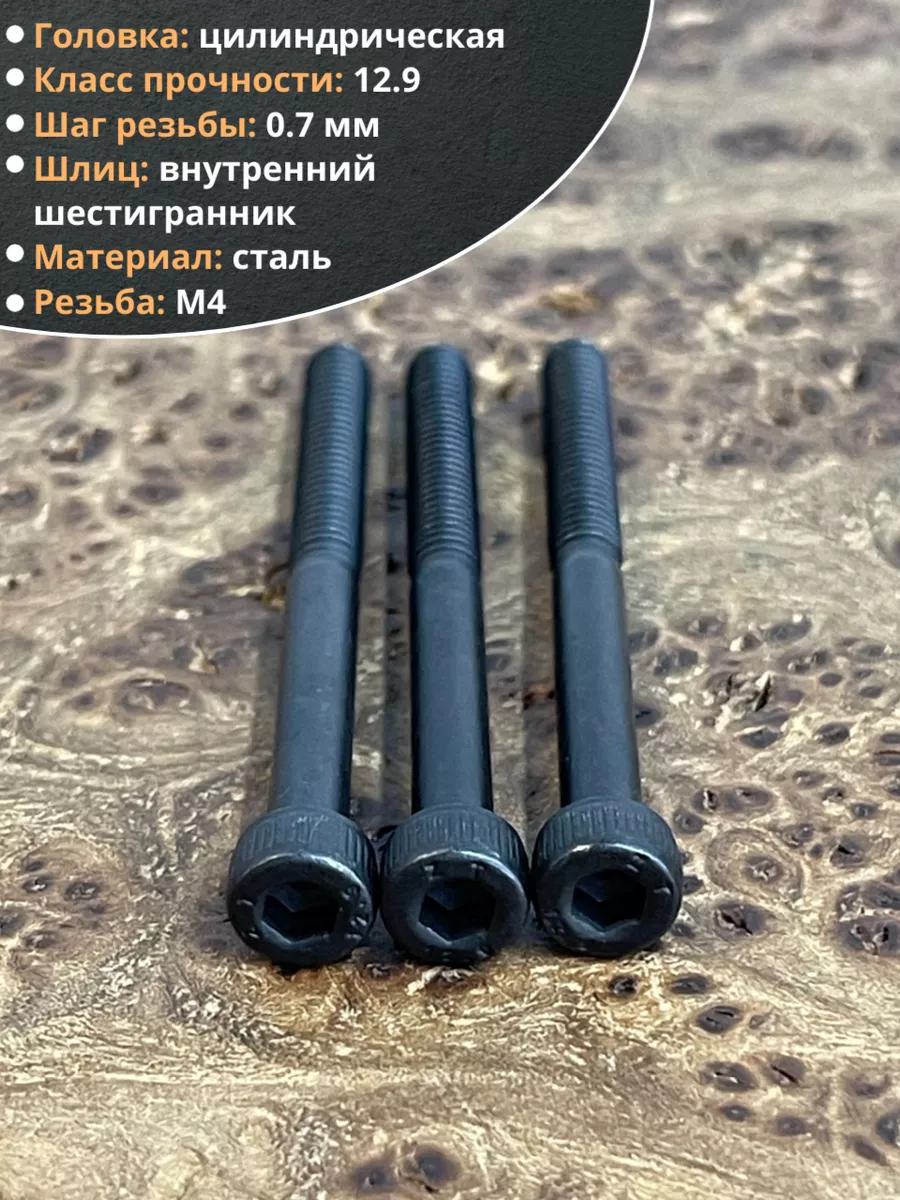 Винт высокопрочный НР М4х45 мм к.п.12.9 черный DIN912, 50 шт.